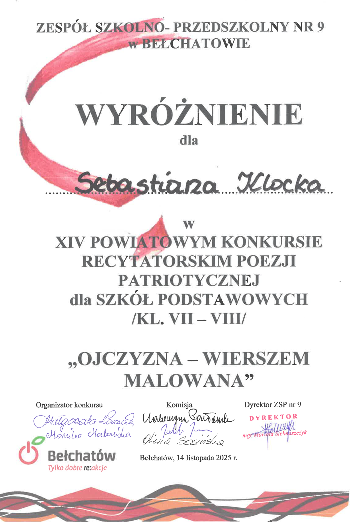 Informacje o naszych sukcesach w konkursach artystycznych i przedmiotowych- Strona główna